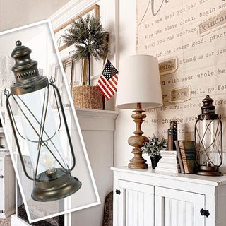 With its antique brass finish and vintage-inspired design, our tabletop LED lantern is great for adding style and interest to your home décor. Featuring a unique look with old-fashioned charm, it exudes timeless beauty with its gorgeous details.