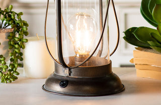 Dripping with character, this metal tabletop lantern includes an LED light that allows it to illuminate any room in your home. Light up any tabletop, your mantel, buffet table, patio or porch and enhance the look of your existing décor.