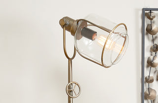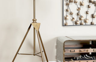 Modern style gets an industrial upgrade with our Bronze Tripod Floor Lamp. Crafted of metal with an antique bronze finish this captivating lamp includes a clear glass shade for a true industrial look. The tripod shape of this distinctive floor lamp accentuates its unique style making its presence known wherever it is displayed.