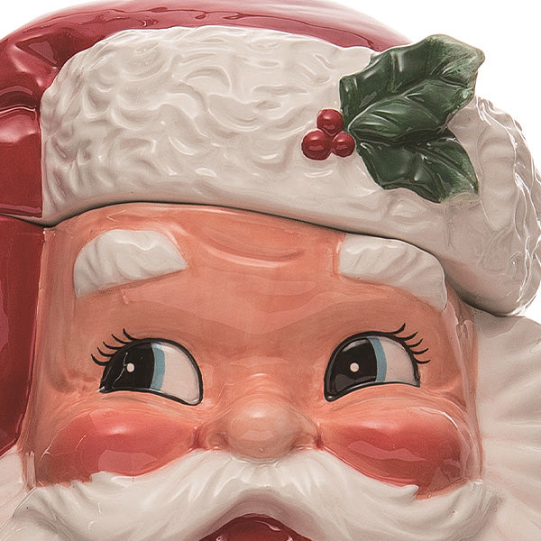 This charming cookie jar is expertly crafted to showcase a classic Santa Claus design, adding a touch of whimsy and holiday warmth to any kitchen. Its vintage-inspired aesthetic not only makes it a perfect container for your favorite holiday treats but also a charming decorative piece for your countertop.