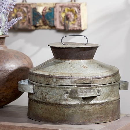 Crafted after an artisanal 100-year-old hand-made cooking pot today’s steal has a striking look that will bring rustic beauty and charm to your space. This antique-inspired Metal Water Pot has a unique shape and beautifully distressed look great to add an eye-catching accent to your home’s decor.