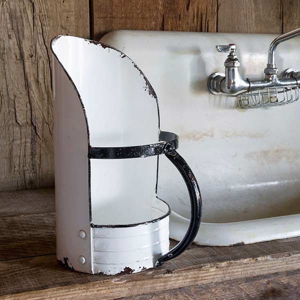 Oh Me Oh My!! We have outdone ourselves with this super unique find! Not only are we obsessing over the chippy enamel inspired metal but we love that this piece is one of a kind! This farmhouse grain scoop looks sooooo authentic... it was MADE to be a conversation piece in your Farmhouse space!!!