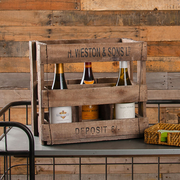 Oh happy morning! Actually happy is an understatement! We are THRILLED to bring you this beautifully crafted Vintage Wine Bottle Crate that is made from recycled wood! We are head over heels for ANYTHING recycled or reclaimed!