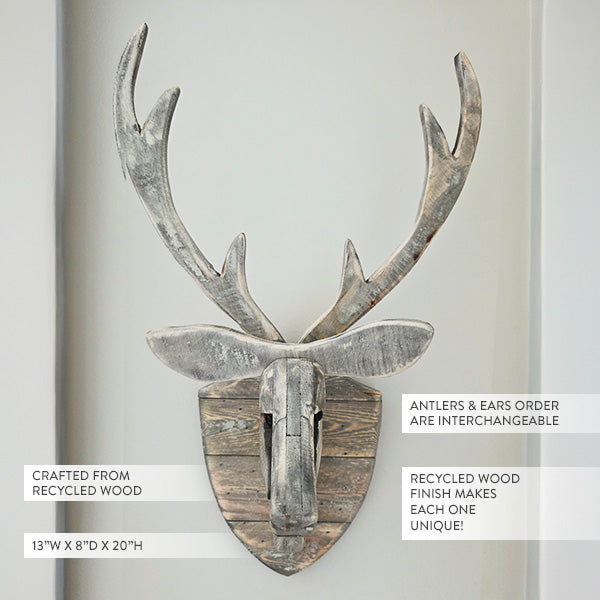 Crafted from Recycled Wood – Sustainably made using recycled wood, ensuring no two deer heads are exactly alike.