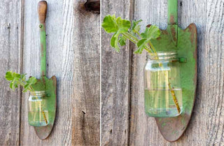Garden spades are always your trusted companion when digging in your lush gardens on a hot summer day... So why not show off all of your hard work by hanging one of these beautiful vintage pieces along with a bundle of fresh flowers?! They really do make the perfect match! The distressed detailing paired with the clean fresh mason jar full of your favorite picked flowers will bring your space such a heartwarming feeling!