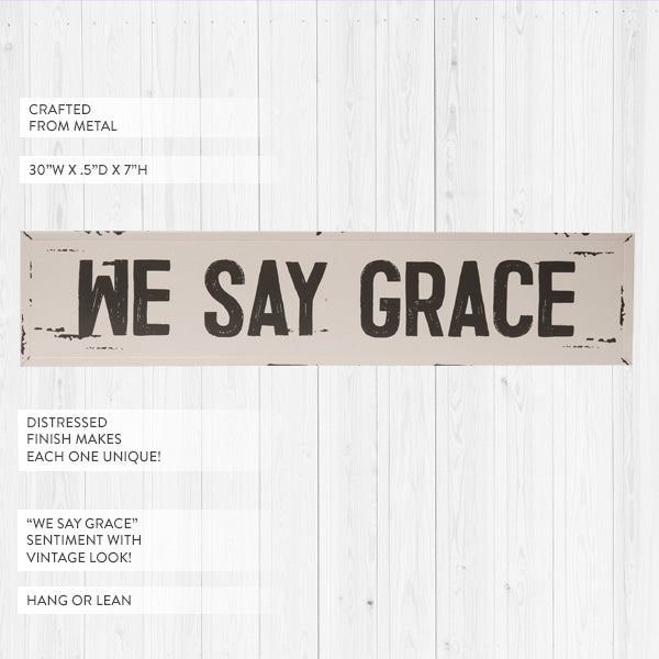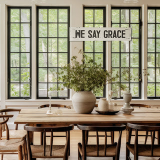 Introducing our Distressed "We Say Grace" Wall Sign - a farmhouse-inspired statement piece that embodies the essence of gratitude and rustic charm.