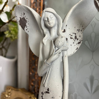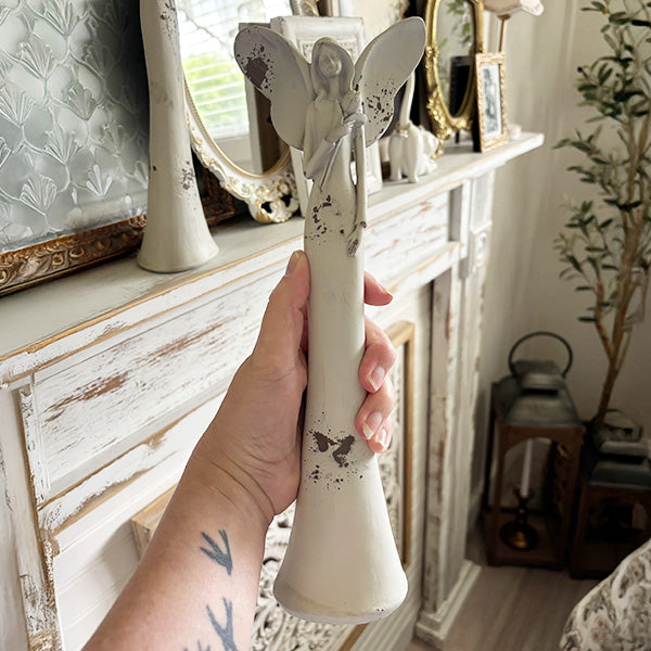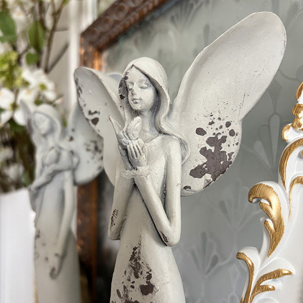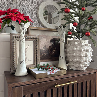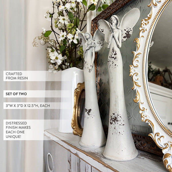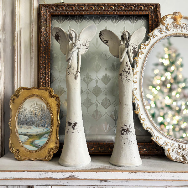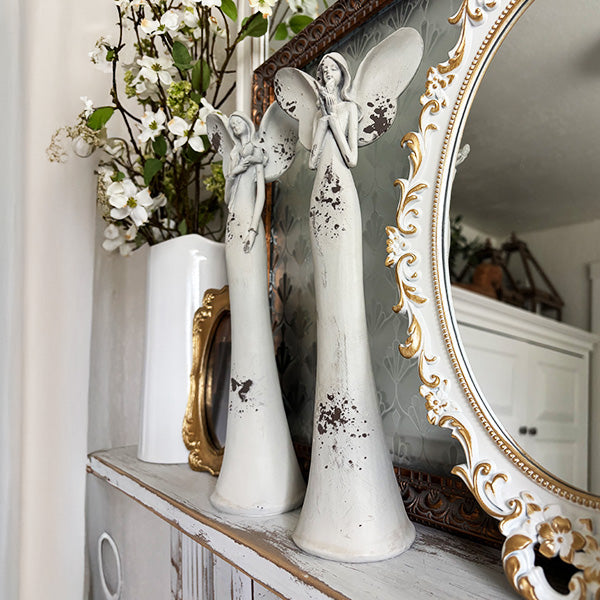 Bring a peaceful presence to your home with our Weathered Cream Angel Figurines, Set of 2—a heavenly duo perfect for Christmas in July or any time you want to add spiritual serenity to your space. Each angel stands tall with graceful wings and prayerful poses, finished in a soft, creamy white tone with lightly distressed details that lend a vintage, handcrafted charm.