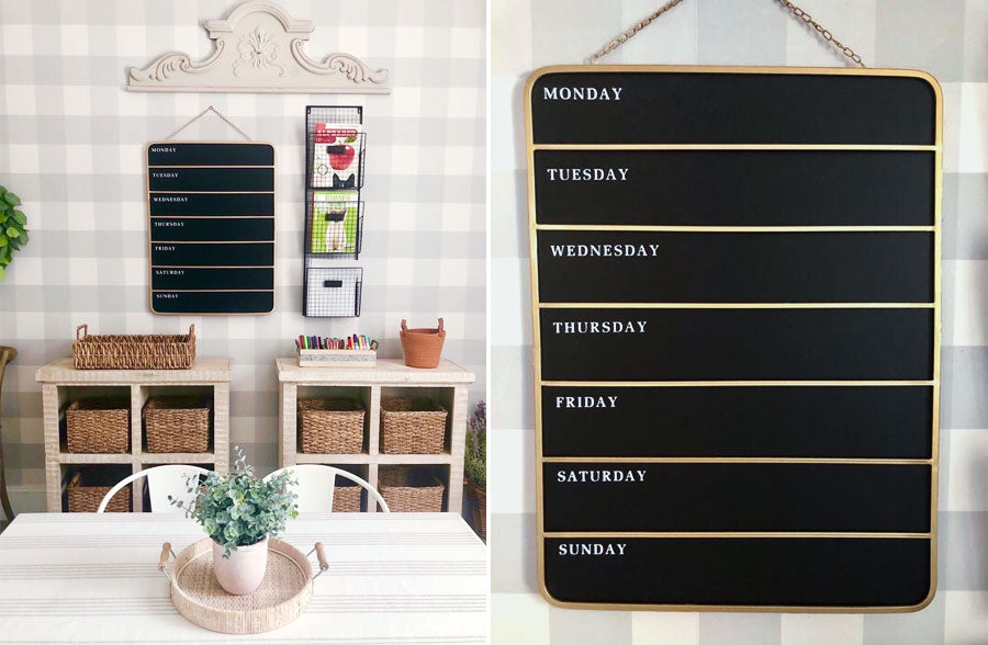 A statement piece FOR SURE this metal chalkboard planner will look great in your kitchen, office or entryway. We’re telling you this piece will DEFINITELY get some organizing done. Use this metal chalkboard for reminders and notes! This beauty will make organizing easy as 1-2-3 ;)