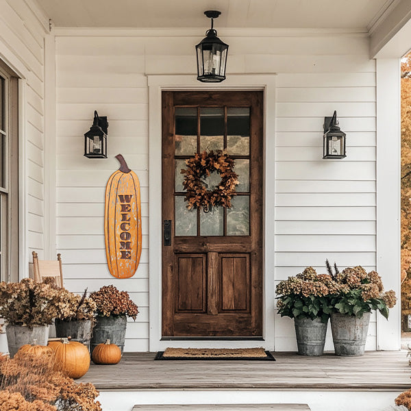As the crisp autumn air begins to roll in and the leaves start to change, fall in love with fall by greeting the season with a charming Welcome Pumpkin Porch Outdoor Sign. Picture coming home after a long day, the golden hues of sunset painting the sky, and being welcomed by this delightful rustic sign. Its warm, inviting design instantly sets the tone for cozy fall evenings spent with loved ones.