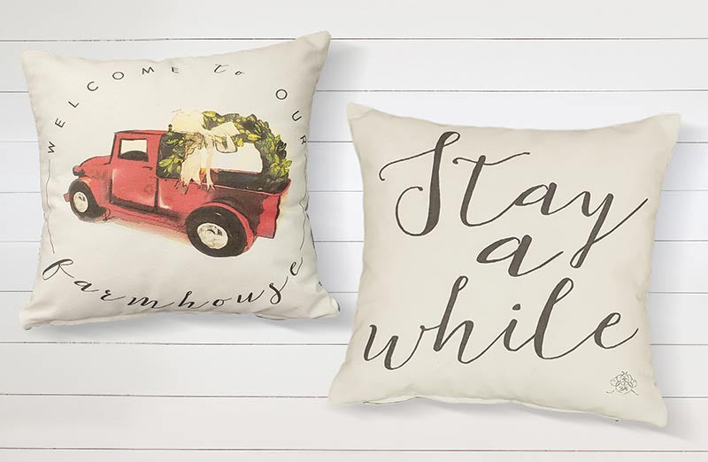 If this is your first time ever seeing one of our Truck Pillow Covers we wanted to give you a quick little background (don't worry it's the short version LOL). We started these truck pillows around Christmas of 2016 and the response to our first edition was INCREDIBLE! We named our red truck Oliver and our blue truck Daisy. We couldn't wait to create a new edition for every holiday and every season! We loved the idea of bringing y'all something that you could rotate from season to season for years to come. Traditions are so important to us and what better way to carry out a beautiful tradition than with these beloved farmhouse pillows! We design them and they are exclusive to Decor Steals. You won't find ANYTHING like this anywhere else! We always keep you all in mind every time we are designing a new edition and even have you vote for your favorite (keep your eyes peeled... a new one will always be coming your way!).