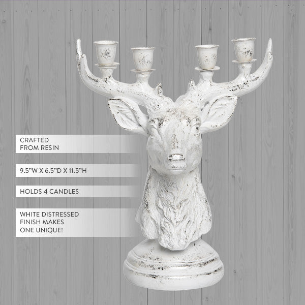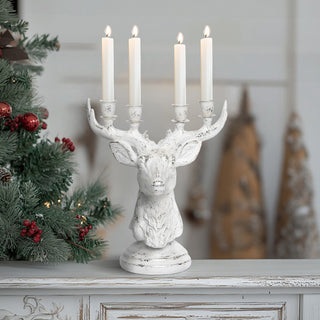 Oh deer, it's beautiful! The White Distressed Reindeer Candle Holder is the perfect way to light up your holiday decor with a touch of rustic charm. This beautifully crafted candle holder features a graceful reindeer design, with a distressed white finish that ensures each piece is unique. Holding up to 4 candles, it brings a warm and cozy glow to any space while adding a festive flair to your Christmas decor. Whether placed on a mantel, dining table, or as a centerpiece, this reindeer candle holder is sure to be a delightful addition to your holiday celebrations.