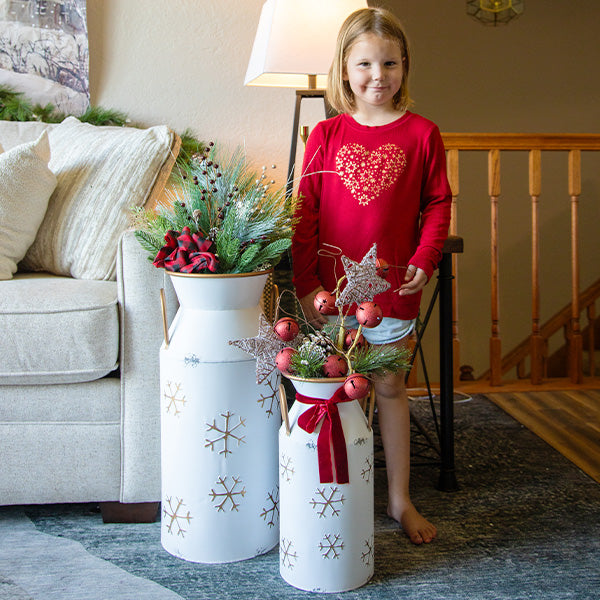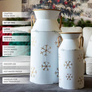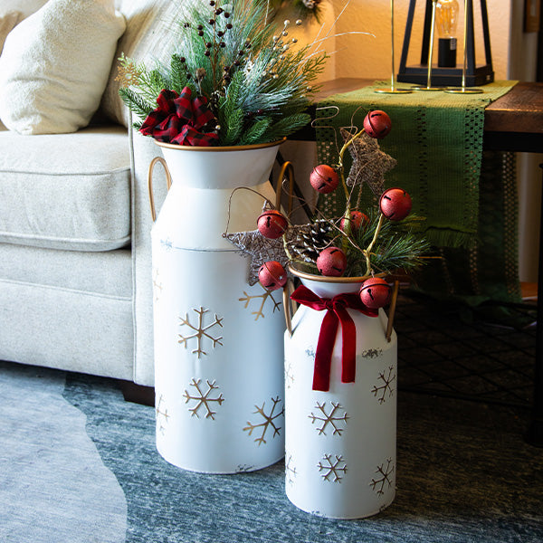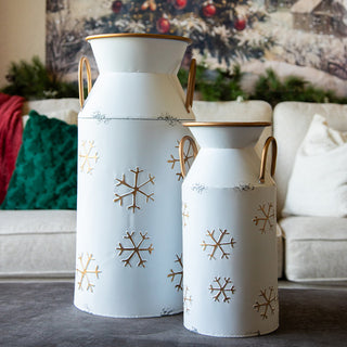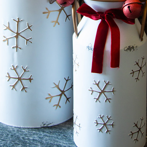 Bring on the sunshine and the snowflakes—because who says Christmas cheer is only for winter? Our Large Embossed White Snowflake Metal Vases, Set of 2 are here to spread year-round joy with a rustic twist! These charming iron cans feature a matte white finish adorned with festive golden snowflakes and natural wood-look handles, making them a merry must-have for any farmhouse-inspired home. Whether you're celebrating Christmas in July or planning ahead for the holidays, these beauties will have your space feeling warm and whimsical—even if it’s 90 degrees outside.