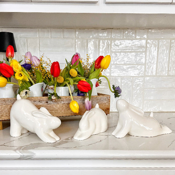 What’s your favorite yoga position? Mine is bunny stretching! Actually, I'm more of a sit-and-watch-you-do-it yoga person. :) Bring instant serenity and charm to your space with this White Yoga Bunny Decor, Set of 3.