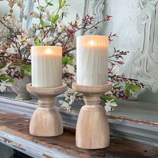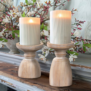 Enhance your home décor with the understated elegance of our Whitewash Pillar Candle Holders. Whether adorning your dining table for a cozy dinner or serving as a decorative accent in your living room, these candle holders add a warm and inviting atmosphere to any setting. Experience the perfect blend of style and functionality with this set of two versatile candle holders, designed to illuminate your space with grace and sophistication.