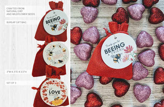 We couldn't be more excited about this cute little steal! What a PERFECT gift for your plant lover friends... or anyone! These red burlap sacks are filled with wildflower seed balls that will bloom into something beautiful! Share these with friends and family... the cute tags will add a charming touch!
