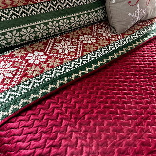 Create a cozy winter retreat with our Winter Themed Quilt Set. Perfect for Christmas, New Year, and the snow-globe months beyond, this bedding brings a smile to your face every time you step into the room. Its charming mix of red, green, white, and khaki hues creates a festive yet versatile look that feels just right all winter long.