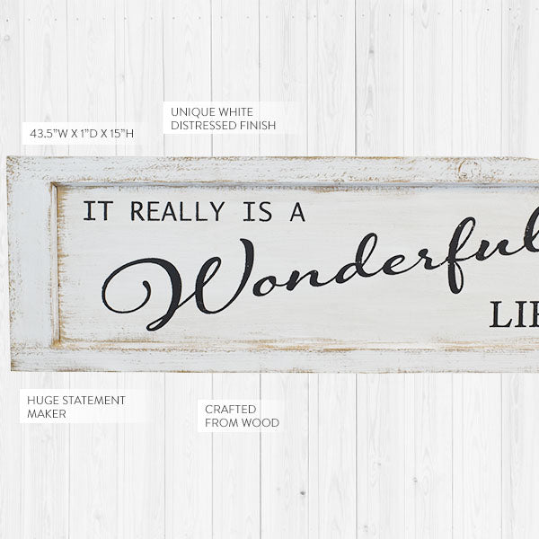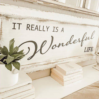 Hang this Wonderful Life Wooden Distressed Sign high as a reminder that LOVE and LIFE are beautiful gifts that should be treasured dearly! This HUGE sign literally has it ALL! So much farmhouse charm, a beautiful distressed finish AND it’s made from wood... All of which will blend cohesively with any of your current décor! And can we mention again this sign is HUGE! If you need a statement maker... THIS IS IT!