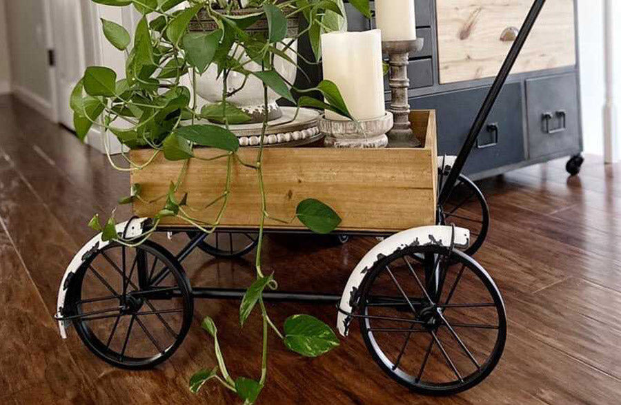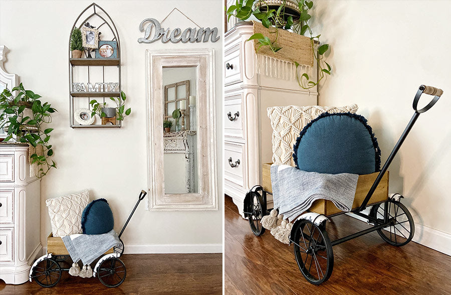 You can even add this wooden wagon planter to your entryway to collect your coats or shoes! We can see this styled out on your front or back porch with your favorite potted plants. Add this beauty to your living room to hold your cozy blankets. We can see this wooden wagon planter in your bedroom holding your extra throw pillows! This piece will WOW everyone styled in your dining room or kitchen even. Add this piece to your bathroom to store your extra toiletries and necessities!! The sky is the limit with this AMAZING steal!
