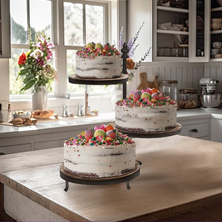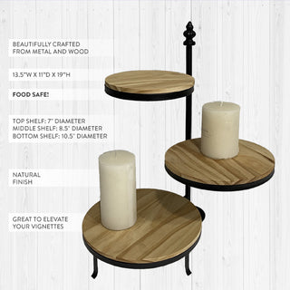 This Wood and Metal Tiered Swivel Tray is super unique and will look even better in your home! We can see it decorated with mini cupcakes, muffins, biscuits, and tiny tea sandwiches. This is the PERFECT size for your hors d’oeurves for a small dinner party! This piece will be beautiful styled with gourds, pinecones, ornaments, Easter eggs, flowers and even candles as part of a centerpiece on your dining room table! The possibilities are truly ENDLESS with this tiered tray!
