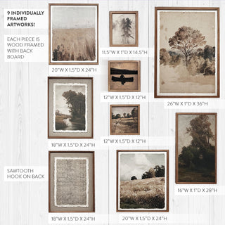 The Rural Countryside Wood Framed Wall Decor, Set of 9, is more than just wall art; it's a statement that brings the serenity and beauty of the countryside into your living space. Ideal for living rooms, bedrooms, or hallways, this set is designed to inspire and delight. Take advantage of our daily deals and enhance your home with the rustic charm and farmhouse elegance of this beautiful wall decor set.
