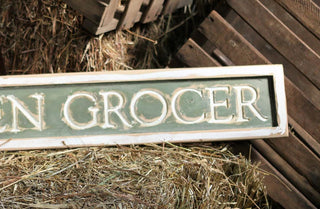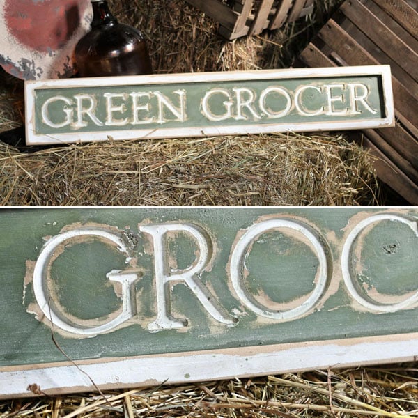 This antiqued carved wood sign is just so perfect for any type of decor and we are truly in LOVE! Distressed in design and unique in style this vintage groceries sign reminds us of a time gone by.