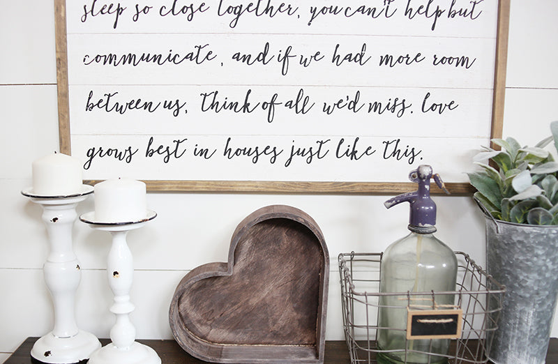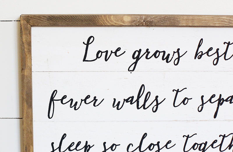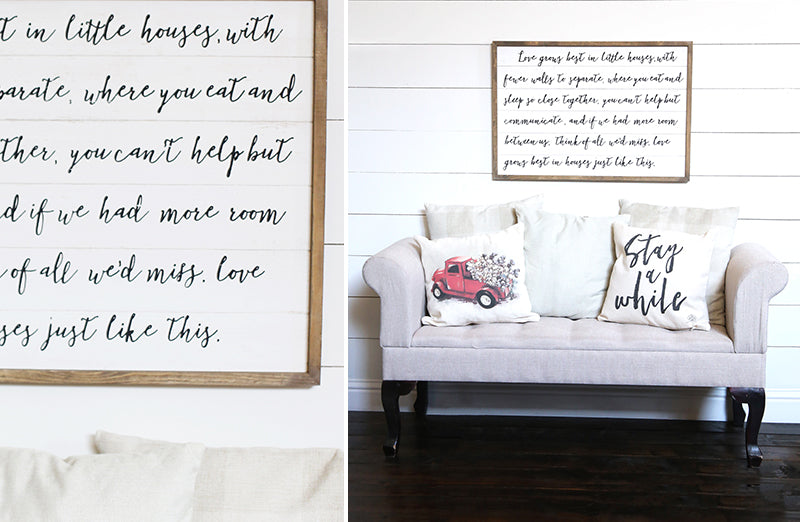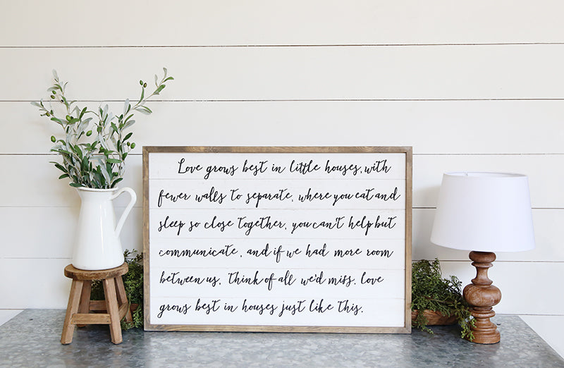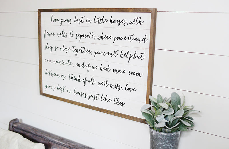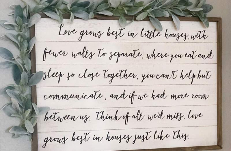 But what resonates most with us is the message... "Love grows best in little houses with fewer walls to separate where you eat and sleep close together you can't help but communicate and if we had more room between us think of all we'd miss. Love grows best in houses just like this." I mean does it get any more beautiful than that?!