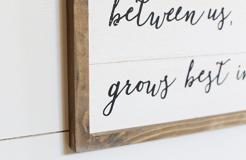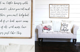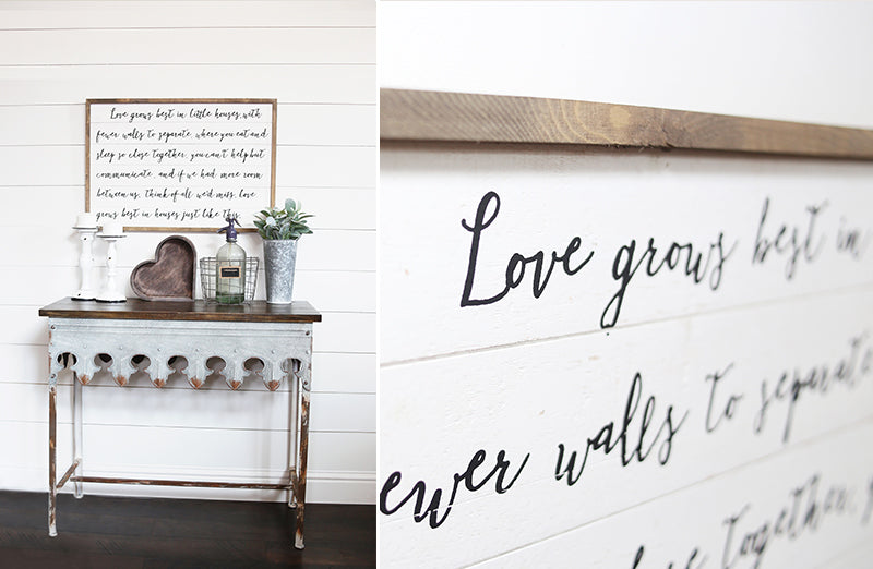 HOORAY for this AHHmazing steal! We have been featuring this sign a lot lately in our photos and the response has been overwhelming. We are SO SUPER EXCITED to be able to bring this into your homes! We obviously love the the painted white wood background that mimicks shiplap and that raw wood edge! The simple black cursive that reminds us of a hand written love letter. All so farmhouse all so us!
