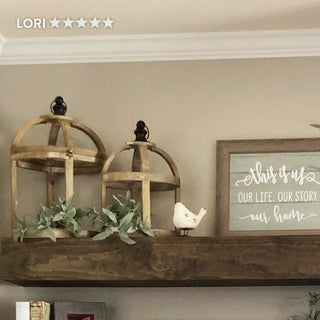 These Wood Oval Cloche Style Lanterns would also be lovely on your entryway table, styled with LED candles or styled on your dining table as part of a centerpiece! These will add depth and so much style to your living room up on your mantel.