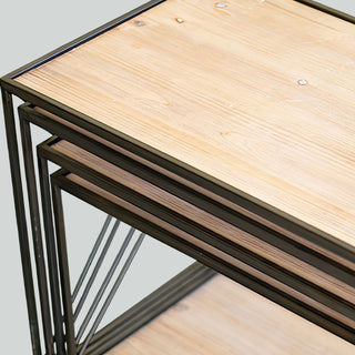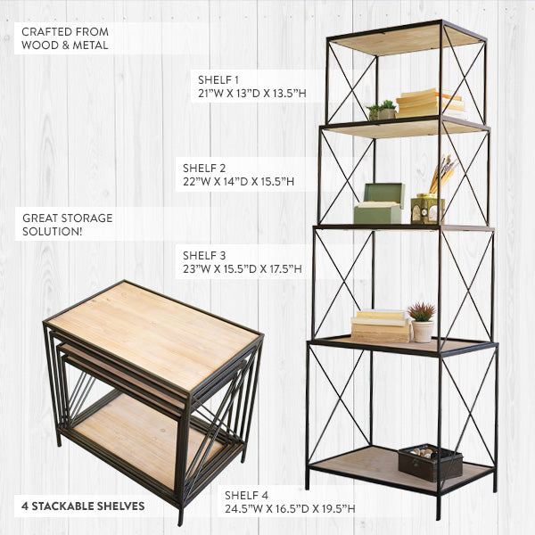 Introducing our Four Tiered Stackable Metal and Wood Shelving Unit—a versatile and chic answer to enhancing both your home's organization and aesthetic. Melding robust metal with inviting wood, this unit effortlessly marries practicality with visual allure.