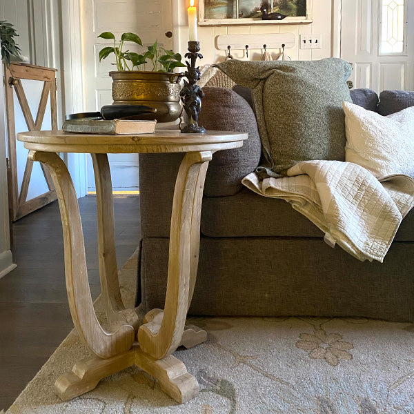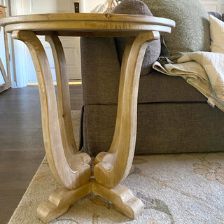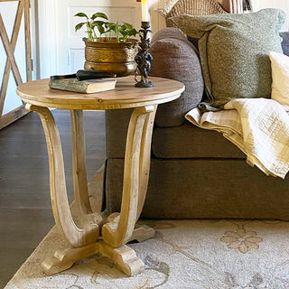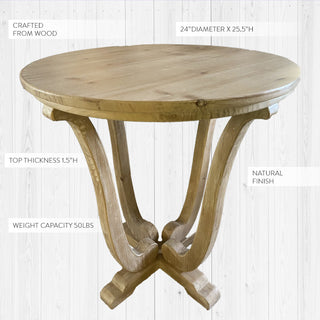 Introducing our Amelia Round Wood Table, a stunning accent piece that combines elegance and affordability: