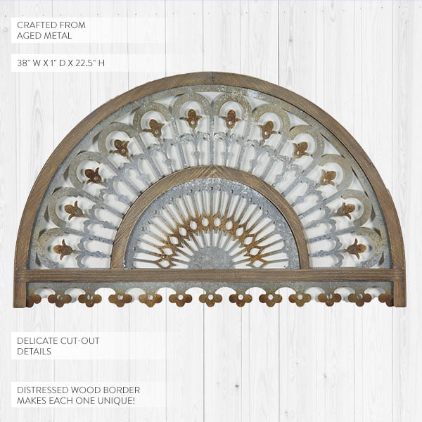 Can you say LOVE at first sight?! Our jaws dropped when we saw this vintage-inspired piece! The aged metal with delicate cut-out details and wood accents are so ornate and will become the best statement maker in your home!
