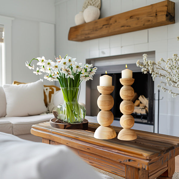 Introducing our Hand Carved Wooden Ball Candle Holders, Set of 2 – a unique and artisanal touch for your home decor. Crafted with intricate detailing, these candle holders showcase the beauty of hand-carved wooden craftsmanship. Perfect for adding warmth and character to your tabletop or mantle, this set elevates your space with a blend of natural elegance and Boho decor style. Illuminate your home with the Hand Carved Wooden Ball Candle Holders, a set that brings both craftsmanship and ambiance to your living space.