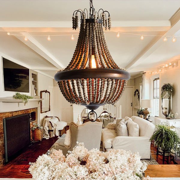 This chandelier is truly HUGE, crafted to make an unforgettable impression the moment you flip that switch. Natural wooden beads cascade down just like the chandeliers of the Victorian era, creating the most enchanting warm glow throughout your space. Whether you hang it in your dining room, over your kitchen table, in your entryway, or even in your bathroom for full dramatic effect—this beauty knows how to steal the show.