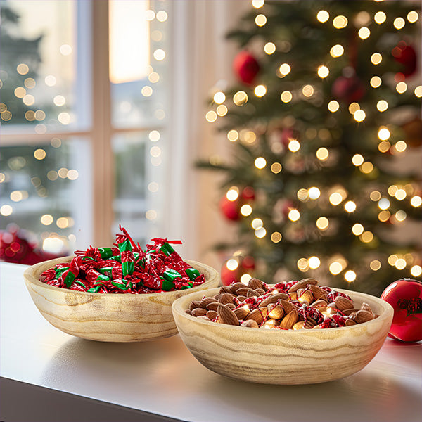 Carefully hand-carved, these wooden bowls aren't just functional; they're a work of art that adds a touch of natural elegance to your table. Crafted from high-quality wood and finished with precision, they're safe for dry foods and provide a warm and inviting backdrop for your culinary creations.