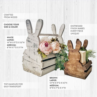 Today we have yet another MUST HAVE spring farmhouse decor item! These Wooden Bunny Baskets are just overflowing with cuteness and charm! With TWO size options and TWO color options... how can you pick?! You might want to buy them all while we have them in stock!
