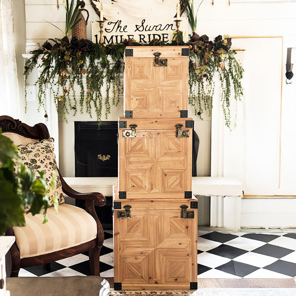 Huge savings are here with our new price! Don’t miss your chance to finally conquer the clutter that’s been taking over your space. This vintage-inspired wooden chest set is your stylish solution to storage woes—beautifully crafted with rustic wood and classic iron accents to deliver the functionality you need and the timeless charm your home deserves. Once they’re gone, they’re gone!