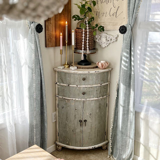Introducing our Curved Distressed Wooden Corner Table, a versatile and stylish addition to your home decor that seamlessly combines traditional elegance with modern functionality. Crafted with meticulous attention to detail, this accent table offers a perfect blend of form and function, making it an ideal choice for small living rooms, entryways, or any space in need of both storage and aesthetic appeal.