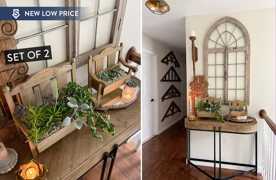 If you want a functional, yet fun, Farmhouse look then these weathered Wooden Cottage Bench Planters are for you. Use them to bring that farmhouse touch to everything you do: