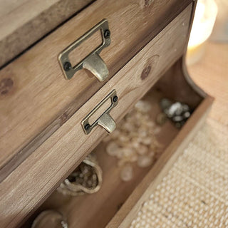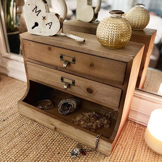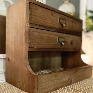 Check out the separate drawers and cubby that this steal features... they are PERFECT for just about anything you need! The natural wood will pair perfectly in any space and the metal accents really give this steal the perfect amount of farmhouse flair! Bring this out during your dinner gatherings to hold napkins and silverware... guests will LOVE this creative use! It's perfect for your at home office, it's sure to give off all the farmhouse vibes you crave. What about using this Vintage Inspired Wood Organizer in the bathroom to hold small toiletries or jewelry?!