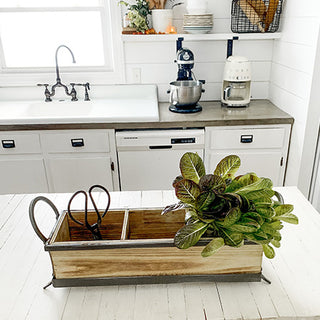 Our Wooden Caddy with Metal Handles is beautifully made with contrasting wood and metal and has THREE divided compartments for organizing! We know this is JUST what you need in your farmhouse! Stylish organization is crazy popular right now and imagine how beautiful this caddy would look organizing all your favorite spaces. Place this in your bathroom to hold your bath bombs, small candles, rolled-up washcloths, and even a bottle of wine for some relaxation. Place one on your kitchen island filled with fresh fruits and veggies, spices or even separating keys and mail!! We love the idea of putting this Wooden Caddy on your dining room table and filling it with an assortment of succulents or fresh florals! Our favorite idea is to use this as an actual garden caddy keeping it in your shed and filling it with fresh herbs or even small gardening tools! It would also make a great addition to your craft room as an organizer for all your paints, markers, glue sticks, and threads! We love how versatile this caddy is because it gives us endless possibilities to use it for ANYTHING where organization and farmhouse decor is needed! Enjoy! PS - Check out how our friends @myessentialhome23 and @welivedhappilyeverafter used hers in the pics above!