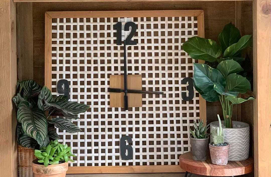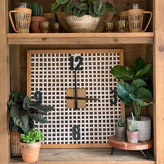 - Beautifully crafted from a wooden frame with wooden basket weave clock face