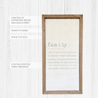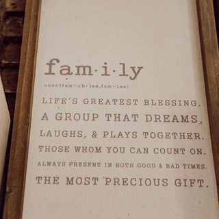 Remind your loved ones what "family" means to you with this wooden sign. Add it to your wall gallery, place it above the mantel or you can hang it in that empty space above the side chair in the living room... where ever you place this simple yet breathtaking sign, it will not go unnoticed!