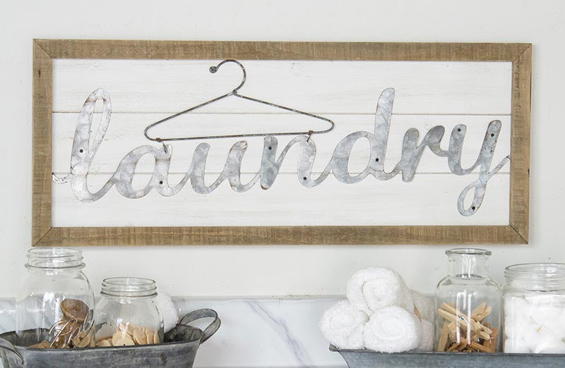Good morning friends! Do we have something special for you!! Here at Décor Steals we believe every room should look and feel beautiful… ESPECIALLY when it’s the hardest working room in your home AND what better way to do that than with adorable wall decor like our wood and metal laundry sign!!