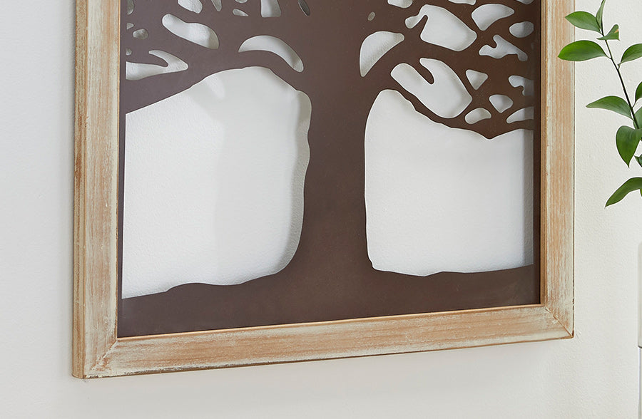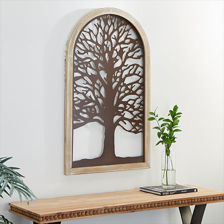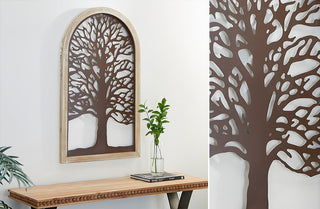Enjoy nature from the comfort of your home with this decorative and BEAUTIFUL bronze and wood tree art! This piece will remain through all the seasons. Style this on ANY empty wall and its sure to give your home a serene vibe. Hang this in your entryway to greet your guests. Style this beauty in your bathroom, bedroom, office, dining room, living room or kitchen. The places to showcase this statement piece are ENDLESS!