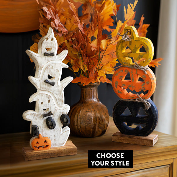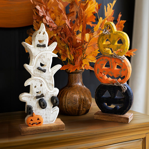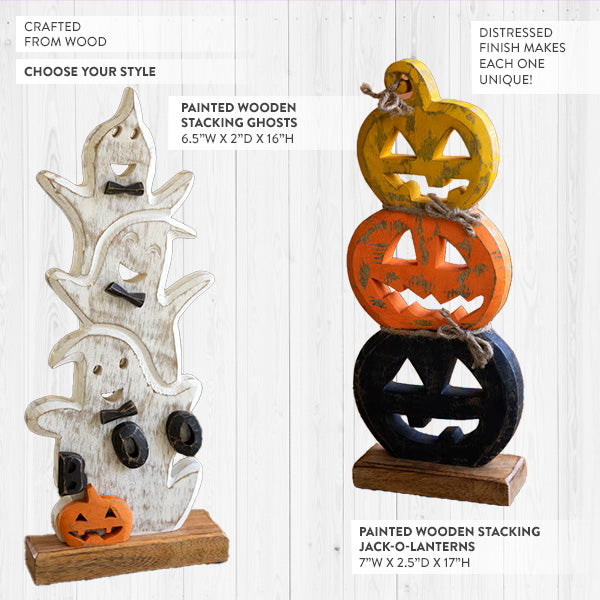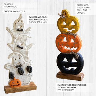 Celebrate Halloween in style with our Painted Stacking Wooden Halloween Decor. Whether you prefer the friendly ghosts or the cheerful jack-o'-lanterns, these pieces are sure to bring joy and a little mischief to your holiday decor.