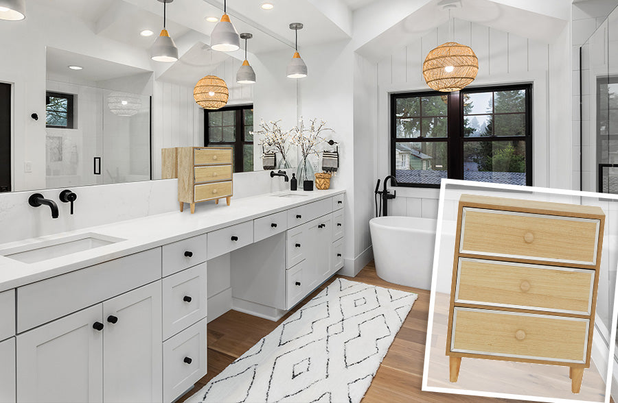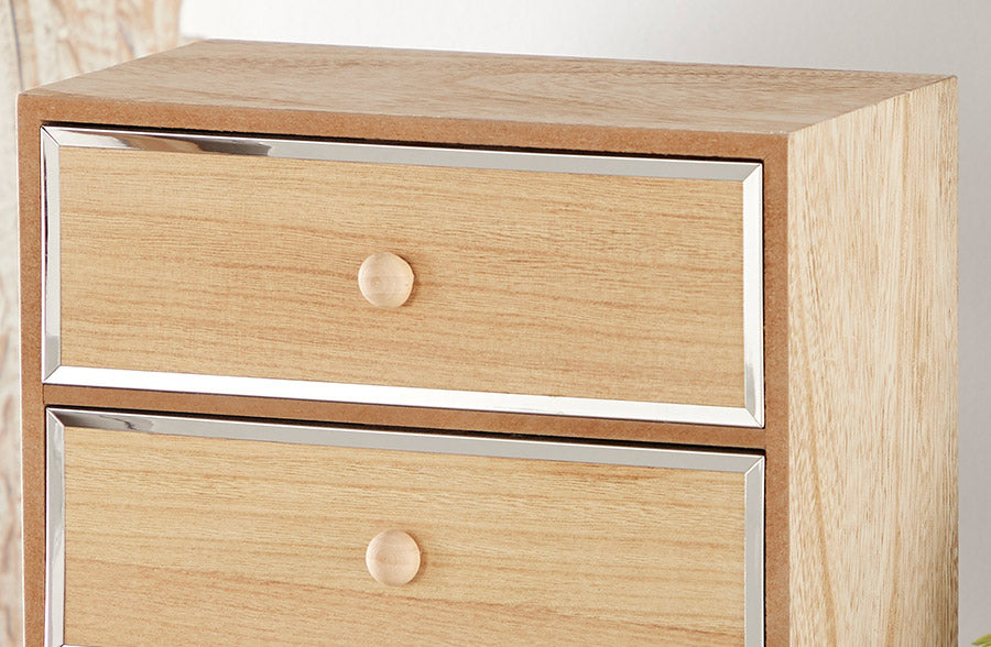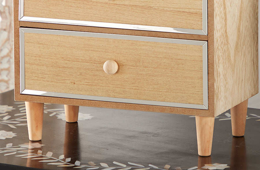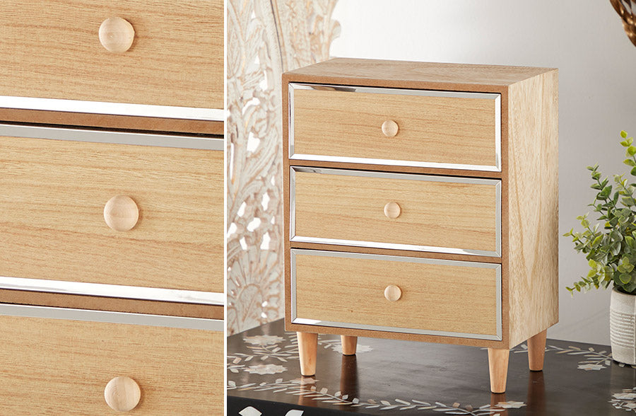 This wooden jewelry chest piece has us swoooooning! As little girls, we always wanted to have a wooden jewelry box and this piece makes that dream come true, but with so much sophistication. This wooden jewelry box emanates both a natural and modern feel with the natural beige wood and that metal trim. This will add dimension to your space. Style this on top of your dresser or in your bathroom to store all your favorite accessories. This piece will keep you organized and keep your space BEAUTIFUL!