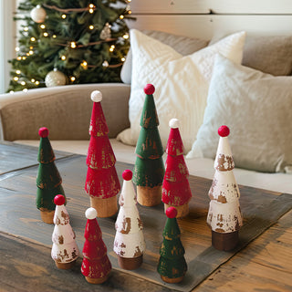 Transform your home into a festive wonderland with our Wooden Painted Christmas Trees, Set of 9. This delightful collection of handcrafted trees is designed to bring the rustic charm of the holiday season indoors. Lovingly hand-painted, each tree boasts unique details that add warmth and character to your Christmas decor.