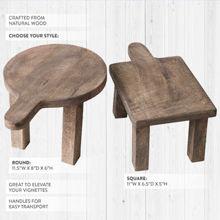 Take your decorative vignette to new heights with our Wooden Pedestal Risers. Constructed from rough hewn wood, the perfectly distressed features and versatility of this wood display stand will fill your home with rustic charm while adding some extra dimension as well.