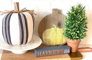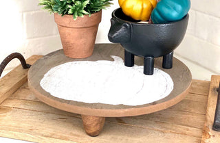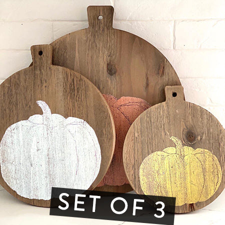 Add style to your farmhouse table by giving your plated appetizers or desserts a lift OR use them as a pedestal to show off your potted herbs and seasonal decor on the kitchen counter! We are obsessed with the pumpkin detailing on each bread board, so they are just as pretty when displayed on their own! We just love these riser bread boards for all the depth they can add to your decor!