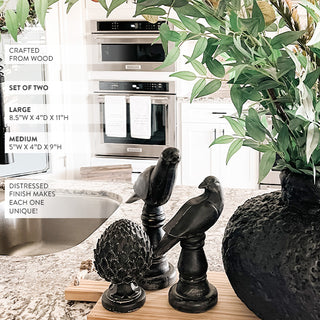 Add a touch of mystery and intrigue to your decor with our LARGE Wooden Raven Statues, Set of Two. These stunning statues bring the allure of ravens into your home, creating an enchanting display that captivates the imagination.